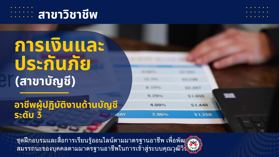 หลักสูตรฝึกอบรมตามมาตรฐานอาชีพ สาขาวิชาชีพการเงินและประกันภัย สาขาบัญชี อาชีพผู้ปฏิบัติงานด้านบัญชี ระดับ 3