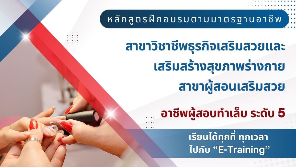 หลักสูตรฝึกอบรมตามมาตรฐานอาชีพ สาขาวิชาชีพธุรกิจเสริมสวยและเสริมสร้างสุขภาพร่างกาย สาขาผู้สอนเสริมสวย อาชีพผู้สอนทำเล็บ ระดับ 5