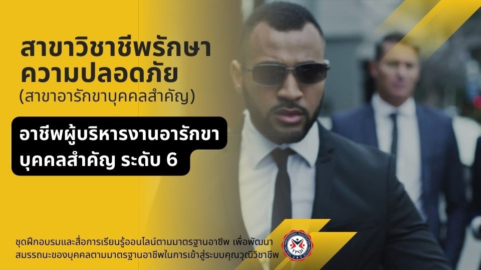 หลักสูตรฝึกอบรมตามมาตรฐานอาชีพ สาขาวิชาชีพรักษาความปลอดภัย สาขาอารักขาบุคคลสำคัญ อาชีพผู้บริหารงานอารักขาบุคคลสำคัญ ระดับ 6