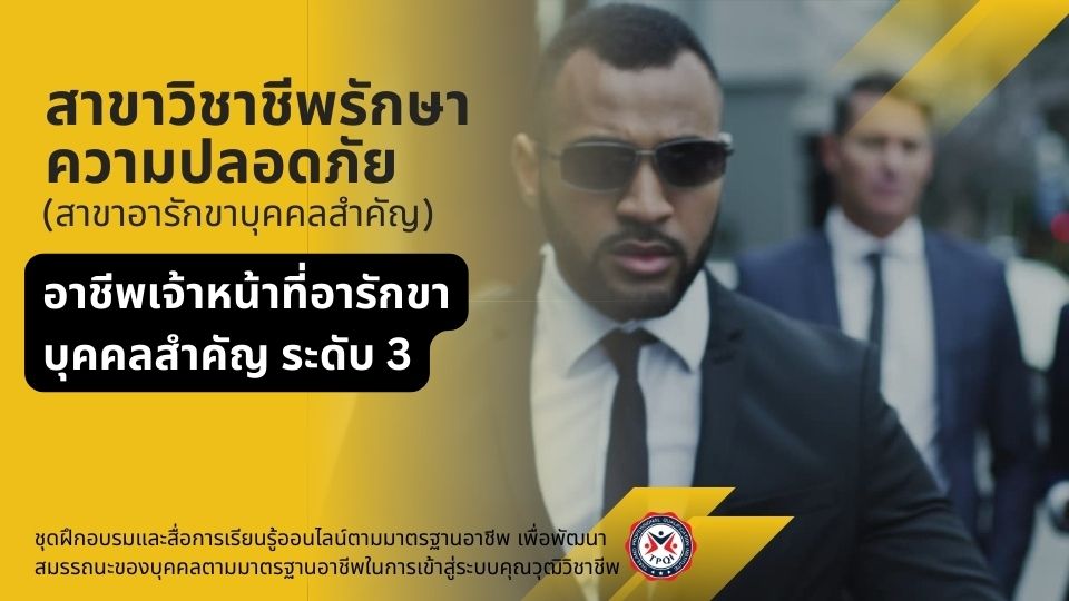 หลักสูตรฝึกอบรมตามมาตรฐานอาชีพ สาขาวิชาชีพรักษาความปลอดภัย สาขาอารักขาบุคคลสำคัญ อาชีพเจ้าหน้าที่อารักขาบุคคลสำคัญ ระดับ 3